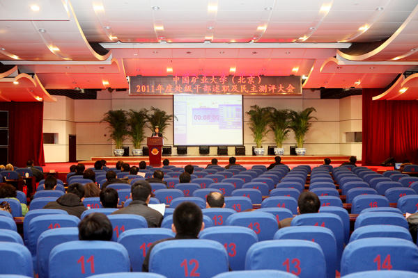为进一步加强干部队伍建设,增进各部门的沟通交流,根据校党委《中国矿业大学(北京)关于对全校处级干部实施2011年度考核暨届满考核的通知》要求,3月6日,我校2011年度处级干部述职及民主测评大会在科技会堂报告厅举行。来自校党政机关等管理部门、学院、教辅、后勤等单位的38名处级干部进行了述职。校党委书记杨仁树,校长乔建永,副校长孙继平、范迅、姜耀东、王忠强,校党委副书记朱书全出席会议。会议由校党委常委、党委组织部部长孙长芸主持。