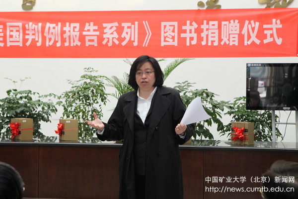 孙继平在讲话中向朱红校友和所在的美国快历公司表示衷心感谢,对朱红校友支持母校发展的深情厚谊深表钦佩。他指出,《美国判例报告系列》图书丰富了我校图书馆的文献资源,将成为图书馆的一大特色馆藏,将对我校的人才培养和学术研究发挥重要作用。他要求图书馆一定要高标准编目典藏,为读者提供高质量服务,充分发挥其作用,不辜负朱红校友的赠书厚意。