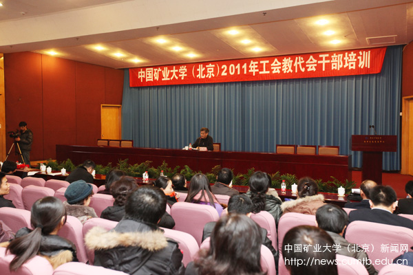12月20下午,学校在国际交流中心学术报告厅举办2011年工会教代会干部培训会议。校党委副书记、工会主席兼教代会执行委员会主任朱书全作培训报告。主管工会工作的各党总支书记、校工会委员、经审委员、女工委员、劳动人事争议调解委员、各部门工会小组长以上工会干部、教代会执行委员会及五个专门工作委员会委员参加了培训.