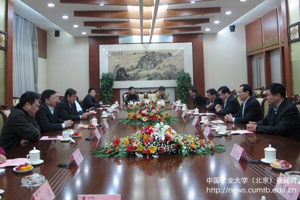 会谈中,杨仁树衷心感谢煤炭企业对学校发展的支持,并介绍了学校近年来发展取得的成绩,以及近期学校在与政府部门联合共建、校企合作、校地合作、校所合作、校校合作等方面取得的新进展与新成就。杨仁树重点介绍了学校“十二五”时期学校在人才培养方面的新举措,即构建外向型的人才合作培养体系,开放式的研究生培养教育体系,精英型的本科生教育教学体系和服务型的继续教育培训体系。学校在科技创新方面对企业发展担负着重要的责任,希望校企双方在人才培养、科学研究、技术开发等方面进一步密切合作、协同创新,用实际行动为我国能源科技事业的发展做出新的更大的贡献。