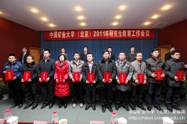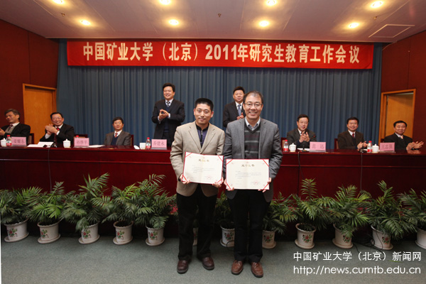 在欢快的乐曲声中,主席台校领导为获奖教师和研究生代表颁了奖。2011年,我校研究生教育取得丰硕成果,有1篇论文获全国优秀博士学位论文提名奖,11篇博士学位论文、27篇硕士学位论文分别获得校级优秀博士学位论文和优秀硕士学位论文。