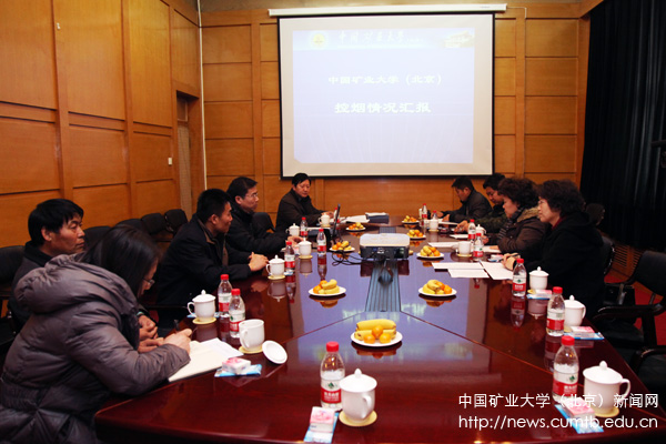 12月13日上午,由北京市爱国卫生委员会主任杨素贤带队,北京市爱卫会、市教委、市疾控中心等相关专业人员组成的北京市无烟校园督导检查组,来校检查校园控烟工作。学校在国际交流中心102会议室举行校园控烟工作汇报会。副校长王忠强作控烟工作汇报,党政办公室、后勤及资产管理处、学生工作处相关负责人参加了会议。