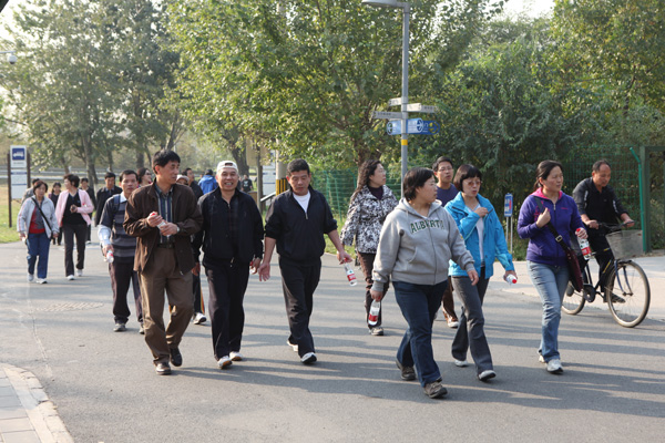 下午14:30,活动正式开始。朱书全在致辞中提到,2009年10月18日,学校隆重举行中国矿业大学建校100周年盛大庆典;2010年10月18日,我们在学校运动场举行了胡锦涛总书记贺信纪念碑落成仪式;今天,我们在奥林匹克森林公园举行“凝心聚力绘宏图、健步迈向十二五”健步行活动,这具有重要意义,就是要传承奥运精神,汇聚人心,凝聚力量,增强体质,推动学校事业发展。他要求大家按照引导路线,在保障安全的前提下进行健步行活动;今后工会要进一步建立激励机制,激发教职员工参加体育锻炼的积极性。