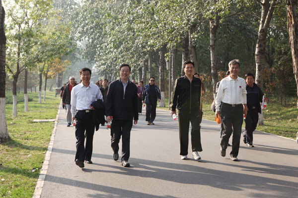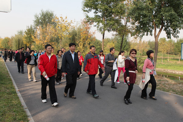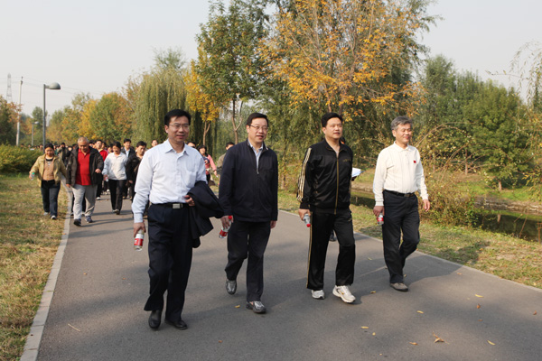 10月18日下午,在校长乔建永、副校长范迅、副校长王忠强、党委副书记兼工会主席朱书全的带领下,全校200余名教职员工在奥林匹克森林公园北园参加了由校工会组织举行的2011年教职工秋季健步行活动。该活动继续以“凝心聚力绘宏图、健步迈向十二五”为主题,激发教职员工参加体育锻炼的积极性,以良好的身心状态投入到学校的建设中。