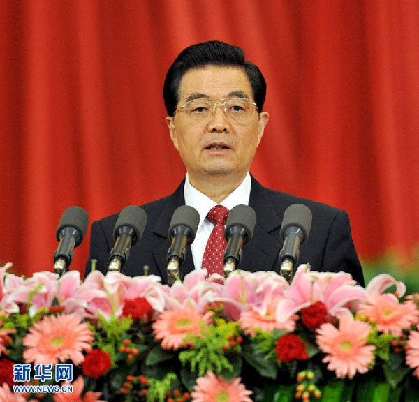 中共中央总书记、国家主席、中央军委主席胡锦涛在大会上发表重要讲话。新华社发