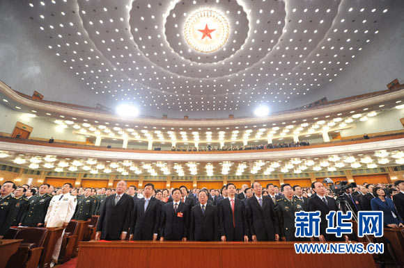 胡锦涛、江泽民、吴邦国、温家宝、贾庆林、李长春、习近平、李克强、贺国强、周永康等出席大会。新华社记者 李学仁 摄