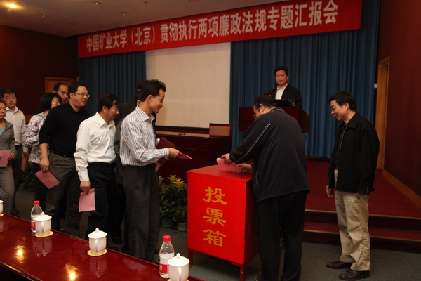 与会人员对校领导班子执行党风廉政建设责任制情况等进行民主测评