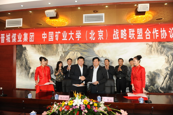 9月15日上午,中国矿业大学(北京)与山西晋城无烟煤矿业集团有限责任公司战略联盟合作协议签字仪式在山西晋煤集团举行。我校党委书记杨仁树、副校长姜耀东,晋城煤业集团董事长、党委书记武华太、总经理李鸿双、副总经理王茂盛出席签字仪式。