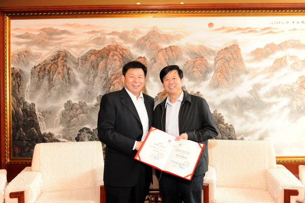 校党委书记杨仁树向山西晋城煤业集团董事长、党委书记武华太颁发兼职教授聘书