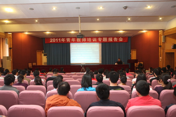 9月20日下午,我校在国际交流中心学术报告厅举行2011年青年教师培训专题报告会。北京师范大学教育历史与文化研究院教授、博士生导师、国家级教学名师张斌贤为我校青年教师作《高校青年教师专业发展的路径与策略》专题报告。报告会由副校长范迅主持。