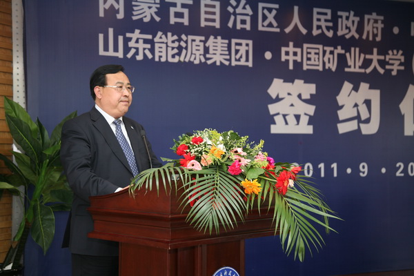 中国矿业大学(北京)校长乔建永对内蒙古自治区、山东能源集团对学校的支持表示感谢,并简要介绍了学校的百年发展历程和现状。他说,多年来,学校始终坚持矿业和安全特色不动摇,始终坚持依托煤炭主体发展,并积极实施外向发展战略,不断加强与煤炭母体的联系。目前,已与全国70余家能源企事业单位建立了战略合作联盟。