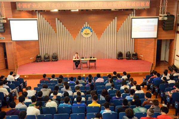 为进一步落实国家助学贷款政策,不断增强学生诚信意识,9月15日,我校在民族楼407举行2011年国家助学贷款政策宣讲暨诚信教育大会。中国银行中关村科技园区支行、我校学生工作处、各学院相关人员,以及2011年申请国家助学贷款的245名在校学生参加了大会。
