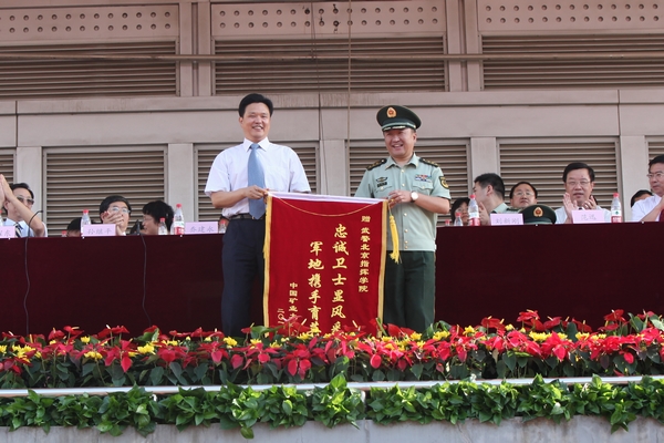 会上,孙继平宣读了军训先进集体名单,范迅宣读了军训标兵名单,学校领导和部队首长为在军训中获奖先进集体和个人进行了颁奖。乔建永向承训部队赠送了“忠诚卫士显风采,军地携手育英才”的锦旗,感谢武警北京指挥学院对我校军训工作的大力支持。