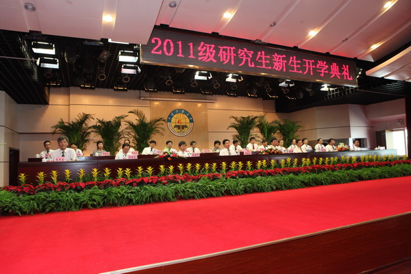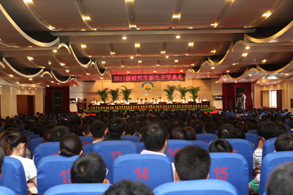 九月的北京,天朗气清。在这个美好的日子里,1283名硕士生和260名博士生为了一个共同的成才目标,共聚百年学府——中国矿业大学(北京)。9月2日上午10:00,2011级研究生开学典礼在科技会堂四层报告厅隆重举行。校党委书记杨仁树、校长乔建永,副校长孙继平、范迅、姜耀东、王忠强,党委副书记朱书全,校长助理吴郭泉出席开学典礼,各学院领导和党政机关有关部门负责人在主席台就座。