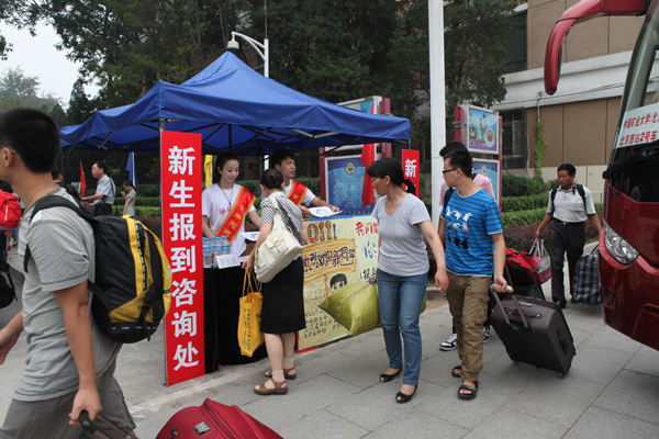 为了给新生提供便利,教务处、研究生院、财务处、保卫处、后勤及资产管理处等职能部门开展联合办公,提供“一站式”服务,让新生顺利办好入学手续。