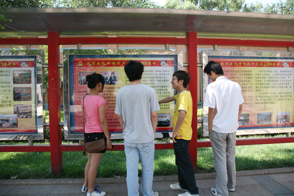 校党委宣传部以独特的视角,以50件新闻事件形式,通过20块展板,见证和记录学校过去五年的科学发展,向党90华诞献礼。重点展示了在过去五年里,学校党委、行政在教育部、北京市的正确领导下,高举中国特色社会主义伟大旗帜,坚持以邓小平理论和“三个代表”重要思想为指导,深入贯彻落实科学发展观,坚持“办精、办强、办特色”的方针,正确处理改革、发展和稳定的关系,团结和带领广大师生员工,发扬艰苦奋斗的创业精神和迎难而上的拼搏精神,不断推动学校事业又好又快发展。