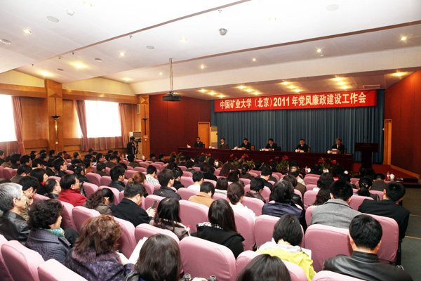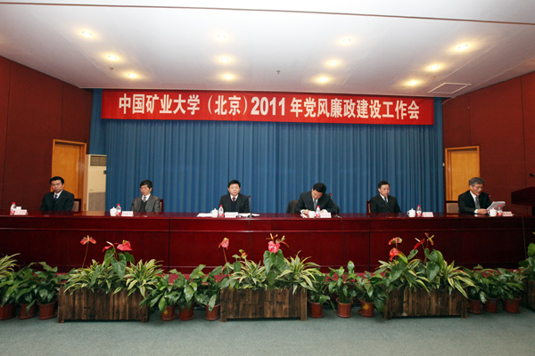 杨仁树强调,2011年是学校贯彻落实“十二五”规划的开局之年,学校的改革发展任务和建立能源工业精英教育教学体系,需要建设清正廉洁的干部队伍和学识精湛、严谨治学的教师队伍;学校高素质、高质量人才培养,需要营造风清气正的育人环境。加强党风廉政建设和反腐败工作既是学校聚人心、谋发展的重要工作内容,也是学校排除干扰,促进各项工作健康、有序开展的重要保证。全校各级党组织和广大党员干部一定要增强反腐倡廉建设的责任感和紧迫感,充分认识反腐倡廉建设对学校改革、建设和发展的重要作用,清正廉洁,踏实做事,努力做好各项工作,为把我校建设成为特色鲜明、国际知名的高水平现代矿业大学而努力奋斗。