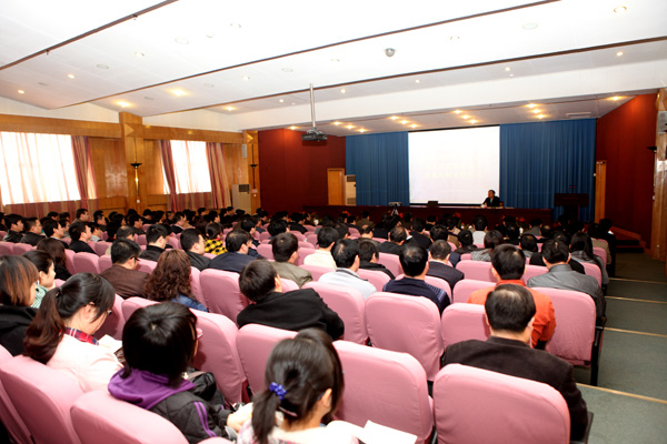 3月20日上午,国务院法制办公室副主任袁曙宏来校并为师生作题为《关于加强建设法治政府的几个问题》的报告。校长乔建永出席并主持报告会。党政办公室、党委宣传部、管理学院相关负责人,管理学院EMBA师生、工商管理培训班师生和文法学院部分师生200余人到场聆听了报告。