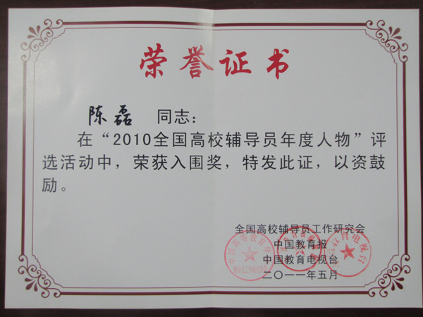我校辅导员陈磊荣获“2010年全国辅导员年度人物”入围奖