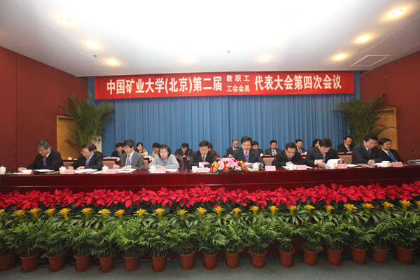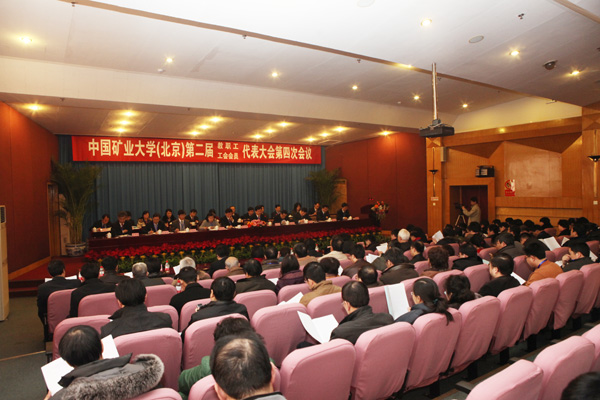 下午2:30,在雄壮的国歌声中,我校第二届教职工暨工会会员代表大会第四次会议在科技会堂四层报告厅隆重开幕。校党委书记杨仁树,校长乔建永,中共北京市委教育工委联络员范国英,中国工程院院士彭苏萍,副校长孙继平、范迅、姜耀东、王忠强,校党委副书记朱书全,原副校长安里千,大会开幕式主席团其他成员在主席台就座。95名正式代表和特邀代表、列席代表等近200人参加了大会。全校正高职称以上教职工也参加了会议。