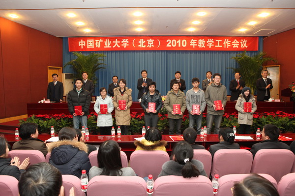 在圆满完成会议各项议程后,我校2010年教学工作会议胜利闭幕。12月30日下午,2010年教学工作会议闭幕式在国际交流中心报告厅隆重举行。会议表彰了三年来获得各类奖励的先进集体以及教师学生,并进行了经验交流。校党委书记杨仁树做重要讲话。校长乔建永,中国工程院院士彭苏萍,副校长孙继平、范迅、姜耀东、王忠强,校党委副书记朱书全出席闭幕式。全校教师干部代表200多人参加了会议。