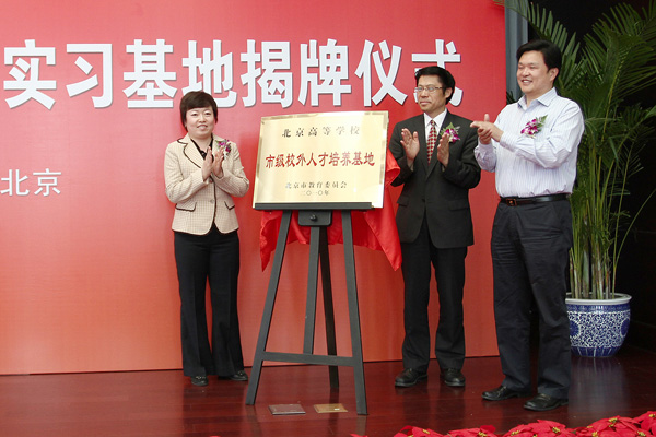 5月16日,我校土建类校外人才培养基地——北京市校外人才培养基地揭牌仪式在北京住总集团举行。校长乔建永、副校长范迅、北京市教委高教处副处长金红莲、北京共青团市委大学中专部副部长孔毅、北京住总集团董事长张贵林、副董事长荣自立、总经理王宝申出席揭牌仪式,我校教务处处长常维亚,力学与建筑工程学院副院长单仁亮、张卫民,力学与建筑工程学院党总支副书记刘波等参加仪式。揭牌仪式由荣自立主持。