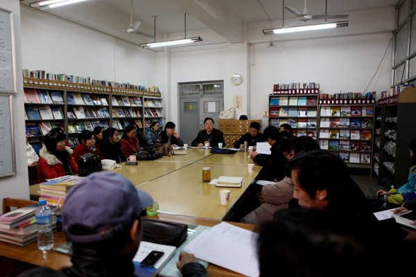 教师干部热烈讨论校长乔建永教学工作报告及有关文件