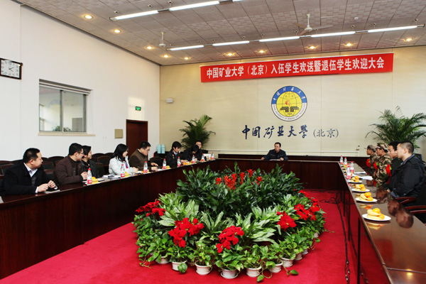 12月8日下午,我校在1号办公楼第一会议室举行入伍学生欢送暨退伍学生欢迎大会。党委武装部部长陈浩、资源学院团委书记陈磊、地测学院团委书记张蕊、管理学院团委书记赵麟、力建学院团委书记段美东及相关学院辅导员、入伍和退伍学生以及同班同学等参加了会议。会议由党委武装部老师王庆多主持。