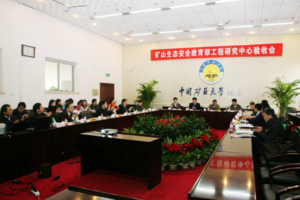 验收会由教育部科技司黄安国处长主持。专家组组长由沈阳大学校长孙铁珩院士担任,成员包括国土资源部中国地质环境监测院副院长田廷山研究员,淮南矿业集团公司副总经理、煤矿生态环境保护国家工程实验室主任程功林高工,环境保护部中国环境科学研究院副总工程师李发生研究员,北京科技大学土木与环境工程学院姜福兴教授,中国地质大学(北京)土地科学技术学院副院长付梅臣教授和中国矿业大学环境与测绘学院副院长冯启言教授等。我校校长乔建永、副校长孙继平出席会议并讲话,校科研处、地测学院、化环学院、机电学院等有关负责人和工程研究中心主要研究人员参加了会议。