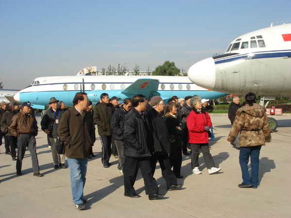 在博物馆,老党员们仔细收听和观看有关新中国空军诞生、成长、壮大的奋斗史,亲手触摸或乘坐具有历史意义和代表性的珍贵飞机:“毛主席座机”、曾将周总理的骨灰洒向祖国大地的“运—5”、结束中国不能造飞机历史的“初教—5”、我国完全自行设计的新式歼击机“歼—10”等。大家深切缅怀毛泽东、周恩来等老一辈无产阶级革命家的丰功伟绩,也对为我国航空事业发展做出突出贡献的英雄和科学家们表达由衷的敬意,并在这些飞机旁纷纷合影留念。