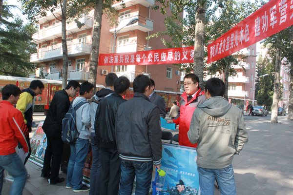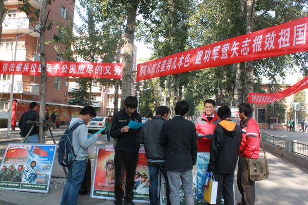 活动中,主要以展板、传单、现场咨询的方式,集中向同学们宣传了今年冬季征兵的对象、基本条件、征集程序以及国家和学校对于入伍学生的优抚政策。学生们也就关心的入伍去向、军营生活、个人在军队的发展前途等问题向在场的老师进行了咨询,武装部老师对同学们的问题给予了热情、详细的解答。活动使广大师生了解了今年的征兵政策。