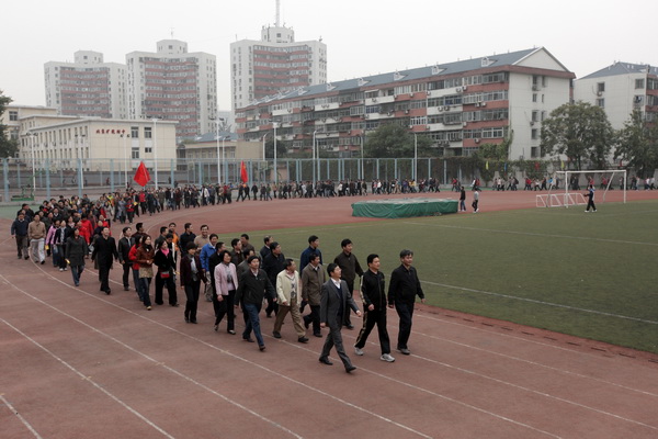 “太行之阳河水东,莘莘学子救国重劳工,……努力,努力,行健天同功。”10月19日下午,雄壮的歌声响彻我校民族楼广场。校长乔建永、副校长孙继平、党委副书记兼工会主席朱书全,全校400余名教职员工参加了由校工会组织举行的全校教职员工唱校歌和健步行活动。该活动以“凝心聚力绘宏图、健步迈向十二五”为主题,用嘹亮的歌声、矫健的步伐,展现了矿大人的热情和自豪。活动由校工会常务副主席晏学民主持。