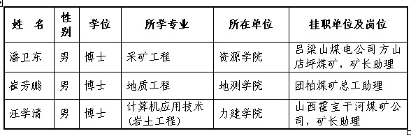 我校首次选派3名青年教师赴霍煤集团挂职锻炼的单位和岗位: