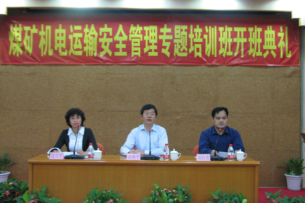 为进一步贯彻落实《国务院关于进一步加强企业安全生产工作的通知》(国发﹝2010﹞23号)精神,进一步提升煤矿机电运输安全管理人员的业务水平,切实加强煤矿机电运输安全管理,有效防范和遏制机电运输隐患引发的煤矿重特大事故,9月27日上午,由国家煤矿安全监察局主办、我校承办的“煤矿机电运输安全管理专题培训班” 在厦门举行开班典礼。副校长孙继平出席开班典礼并讲话。来自全国50家煤矿企业的负责机电运输安全管理的职能部门负责人、分管副总工程师和煤矿机电副矿长、机电副总工程师共75人将接受为期3天的煤矿机电运输安全管理专题培训。
