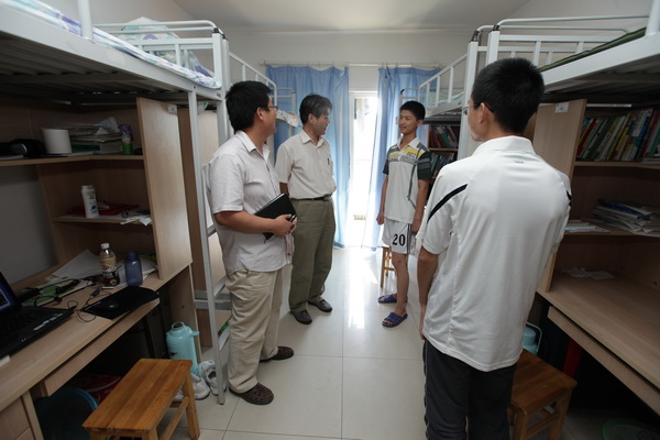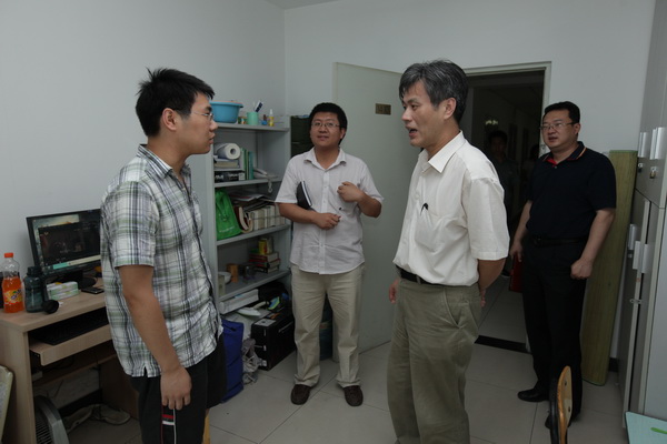 朱书全看望了部分在科技会堂办公的师生和暑假期间留校的学生,在检查学八楼、学十楼、宝源公寓学生宿舍时,向工作人员了解了暑假期间的工作安排。他向暑假期间将坚守在工作岗位的工作人员表示感谢,要求大家带头做好安全防范工作,为全校师生提供一个安全、稳定、祥和的生活工作环境。在学生宿舍,朱书全要求留校学生一定要提高安全防范意识,并祝大家度过一个愉快的暑假。