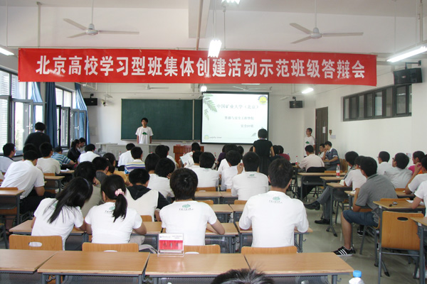 6月20日,由北京市委教育工委主办的北京高校“我的班级我的家”学习型班集体创建示范活动——示范班级风采展示暨评比答辩在华北电力大学举行。来自首都55所高校的56个优秀学生班集体代表参加了活动,北京市教育工委副书记王民忠出席活动。我校资源与安全工程学院安全工程07班代表学校参加了展示活动。