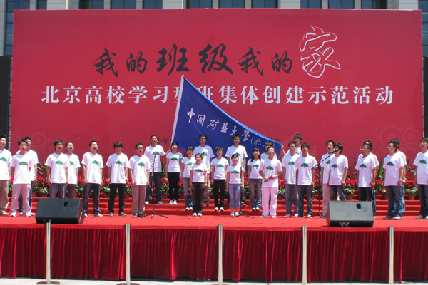 活动设示范班级风采展示和评比答辩两个环节。在班级展示环节,各班级各显其能,设置班级展台并在中心展台展示了班级特色和建设成果。安全工程07班31名同学集体展示了诗朗诵《煤啊!我的情人!我的黑姑娘!》,深情的朗诵流露了学生对煤炭事业的挚爱,真挚的感情感染了现场的50多名评委和1500余名学生。在评比答辩环节,各班级从学习型班集体建设的新视角总结凝练班级建设的实招妙招,汇报了班级建设的成果和班集体暑期社会实践计划。安全工程07班紧扣“家”的主题,介绍了班级创建学习型班集体的经验和方法,受到评委的好评。经评比答辩和现场展示之后,我校安全工程07班被评为北京市“我的班级我的家”学习型班集体创建示范活动“优秀示范班级”。