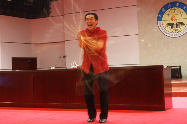 讲演中,他生动形象地讲述了自己用17年饰演孙悟空这一角色的经历与体会,以及他对这部传世之作的深刻感情和领悟。他话语生动,幽默朴实,让在场听众了解到《西游记》的文化底蕴和美猴王的精神内涵。他勉励同学们继承并弘扬优良文化传统,学习猴王的拼搏、正直、忠诚、乐观、感恩、迎难而上、不惧权贵的精神,积极地面对生活和人生中的困难。六小龄童还回答了现场同学们的提问,他鼓励大家要秉持学校“办精、办强、办特色”的办学理念,发扬艰苦奋斗的创业精神和迎难而上的拼搏精神,努力走好人生道路。六小龄童进行了即兴表演,他惟妙惟肖的眼神和动作,灵巧熟练挥舞的金箍棒,把美猴王的风采淋漓尽致地展现出来。