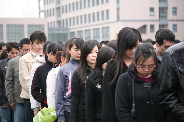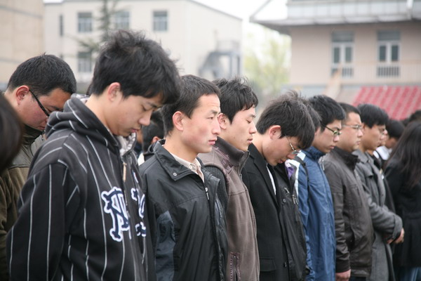 现场气氛凝重、肃穆。广大师生在对遇难同胞表示深切哀悼的同时,大家表示,经过这场重大灾难的考验,矿大师生将和全国人民一道,同舟共济,共渡难关。