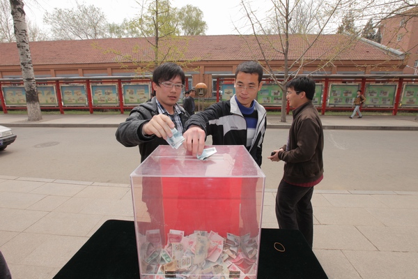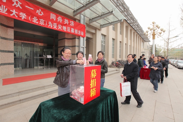 4月14日晨,青海省玉树县发生7.1级大地震,地震震中位于县城附近,现已造成两千余人遇难,上万人受伤。地震发生后,灾区人民的情况时刻牵动着每一个矿大师生的心。为了向灾区人民尽一份绵薄之力,表达对遇难同胞的哀思与对生者的鼓励,4月20日,我校在图书馆前举办了以“万众一心、同舟共济”为主题的捐款活动。