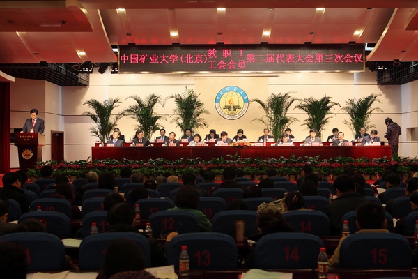 在中国矿业大学迈入新百年、开启新征程中,3月16日,我校又迎来了民主管理和民主监督的一件大事,校第二届教职工暨工会会员代表大会第三次会议(简称二届三次双代会)隆重开幕。这次会议的主题是,高举中国特色社会主义伟大旗帜,以邓小平理论和“三个代表”重要思想为指导,深入学习实践科学发展观,回顾总结学校2009年的主要工作,分析学校当前面临的形势,明确2010年学校的主要工作任务,集思广益,统一思想,求真务实,加快推进特色鲜明、国际知名的高水平矿业大学建设的步伐。