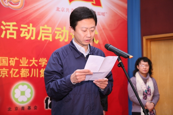共青团北京市委书记王少峰、中共北京市委教育工委副书记王民忠、我校党委书记杨仁树、北京市教委副主任郭广生、团北京市委副书记沈千帆、北京亿都川集团董事长何博远、全国学联办公室主任张健为、我校党委副书记朱书全、北京青少年发展基金会常务副秘书长陈淑惠、团北京市委大学部部长胡九龙出席活动启动仪式