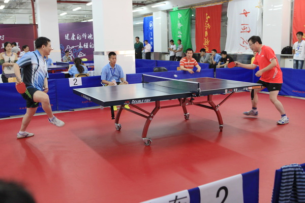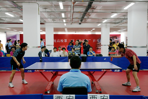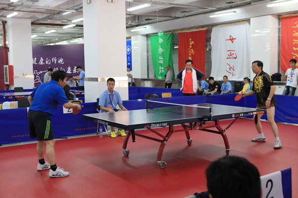 开幕式结束后,各项比赛开始如火如荼地进行。平日里西装革履的校领导们换上一身轻便的运动装,搓球、削球、大力抽球,正手、反手、正反结合,在乒乓球与球拍和球桌激情碰撞奏出的进行曲中,尽情地展示着精湛的技艺、挥洒着拼搏的汗水。裁判员、记分员、工作人员认真负责,周密做好服务工作,使得比赛有序进行。