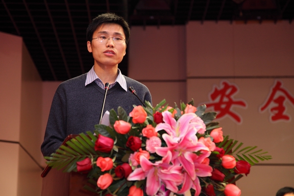 资源学院辅导员陈磊老师作为获奖教师代表发言。他表示一名合格的辅导员、老师应该是学生的知心朋友,和学生建立起一种平等的、朋友间的师生关系;要做好指导学生的领路人,关心学生,帮助学生成长成才;要乐于奉献,做学生的榜样;要突出重点,抓好学风建设中心工作。