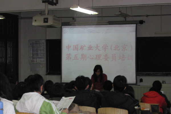在I级的培训中,曲佳做了题为“做一名称职、受欢迎的心理委员”的主题报告,就班级设立心理委员的意义、班级心理委员的筛选标准、心理委员的工作职责、心理委员的工作方法、心理委员的考核等进内容。在II级的培训中,刘海娟与心理委员进行“心理委员的心理学意义”的探讨,通过讲解马斯洛需要层次理论和埃里克森的社会发展八阶段理论来诠释心理委员连任的意义;之后进行了“团体凝聚力”团体辅导活动。