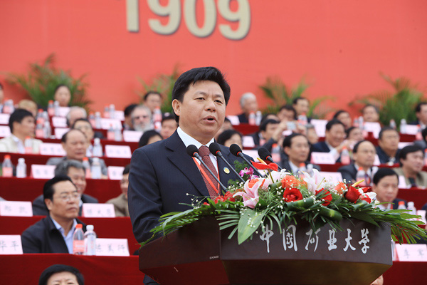 教育部副部长袁贵仁同志在庆祝大会上发表讲话;国家安全生产监督管理总局副局长、国家煤矿安全监察局局长赵铁锤,全国政协常委、中国煤炭工业协会会长王显政,中国工程院副院长杜祥琬院士,诺贝尔奖获得者、美国哥伦比亚大学蒙代尔教授,国外高校代表俄罗斯莫斯科矿业大学校长科尔查克教授,国内高校代表中国人民大学党委书记程天权教授,董事单位代表大同煤矿集团公司董事长吴永平,校友代表潞安矿业集团公司董事长任润厚,校友代表安徽省副省长谢广祥在庆祝大会上致辞。