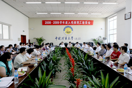 今年,我校除为新入校教职工安排校外岗前培训外,特别安排了校内培训环节,这次座谈会九是校内培训环节的一次重要活动。学校还将邀请全国优秀教师、资源与安全工程学院院长王家臣教授和北京市教学名师、力学与建筑工程学院副院长周宏伟教授为新入校教职工作报告,并组织新教师观摩课堂教学。希望通过丰富多彩的岗前培训活动,充分调动新入校教职工献身矿业高等教育的积极性、主动性和创造性,以崭新的面貌投入教学、科研、管理工作。