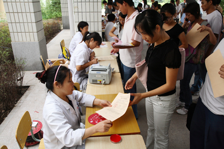 为了保障师生员工的身体健康,针对今年出现的甲型H1N1流感疫情,学校在迎新点设立了体温监测站,对每位新生进行体温测量,并在校卫生所旁设置了工作点进行体温复查,同时发放传单,普及预防、治疗甲型H1N1流感的相关知识。