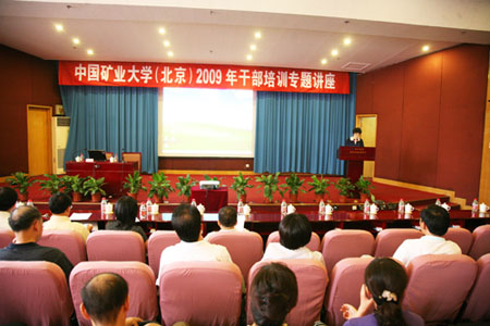 为进一步学习实践科学发展观,切实提高我校干部的思想政治素质、领导能力和管理水平,为实现学校又好又快发展奠定坚实的组织基础,我校于7月11日、12日在国际交流中心报告厅举办了2009年干部培训班,培训班采取专题报告与个人自学相结合的方式。校党委书记杨仁树、校长乔建永,副校长孙继平、范迅、姜耀东、王忠强,校党委副书记朱书全出席了培训班报告会,全校副科级以上干部、副高职称以上教师200余人参加了培训班。