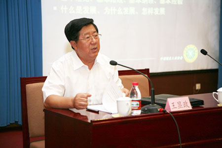 7月11日下午,干部培训班首场报告会举行。全国政协常委、提案委员会副主任,中国煤炭工业协会会长王显政应邀专程来校作专题报告,乔建永主持了报告会。报告以《深入贯彻落实科学发展观,努力促进煤炭工业健康可持续发展》为题,着重阐述了四个方面问题:一是深刻认识和理解学习实践科学发展观活动的重大意义;二是准确把握我国煤炭工业发展形势,树立坚定信心,不断推进煤炭工业又好又快发展;三是世界金融危机与我国经济周期性调整相互叠加,煤炭工业发展仍然面临严峻挑战;四是坚持科教兴煤战略,促进煤炭工业健康可持续发展。王显政会长还代表中国煤炭工业协会,并以一名老煤矿工作者的身份,对我校百年校庆表示热烈祝贺,祝百年矿大,再创辉煌。精彩报告赢得了在场教师、干部的多次热烈掌声。